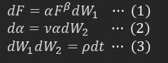 一般にSABRのパラメータβは固定値が使用されているが、βも推計対象とすることにより、描くボラティリティカーブの自由度を上げることができる。これによりキャリブレーションの精度が上がることを確認する。パラメータα、β、ρ、νについては下式(1)、(2)、(3)をご参照。